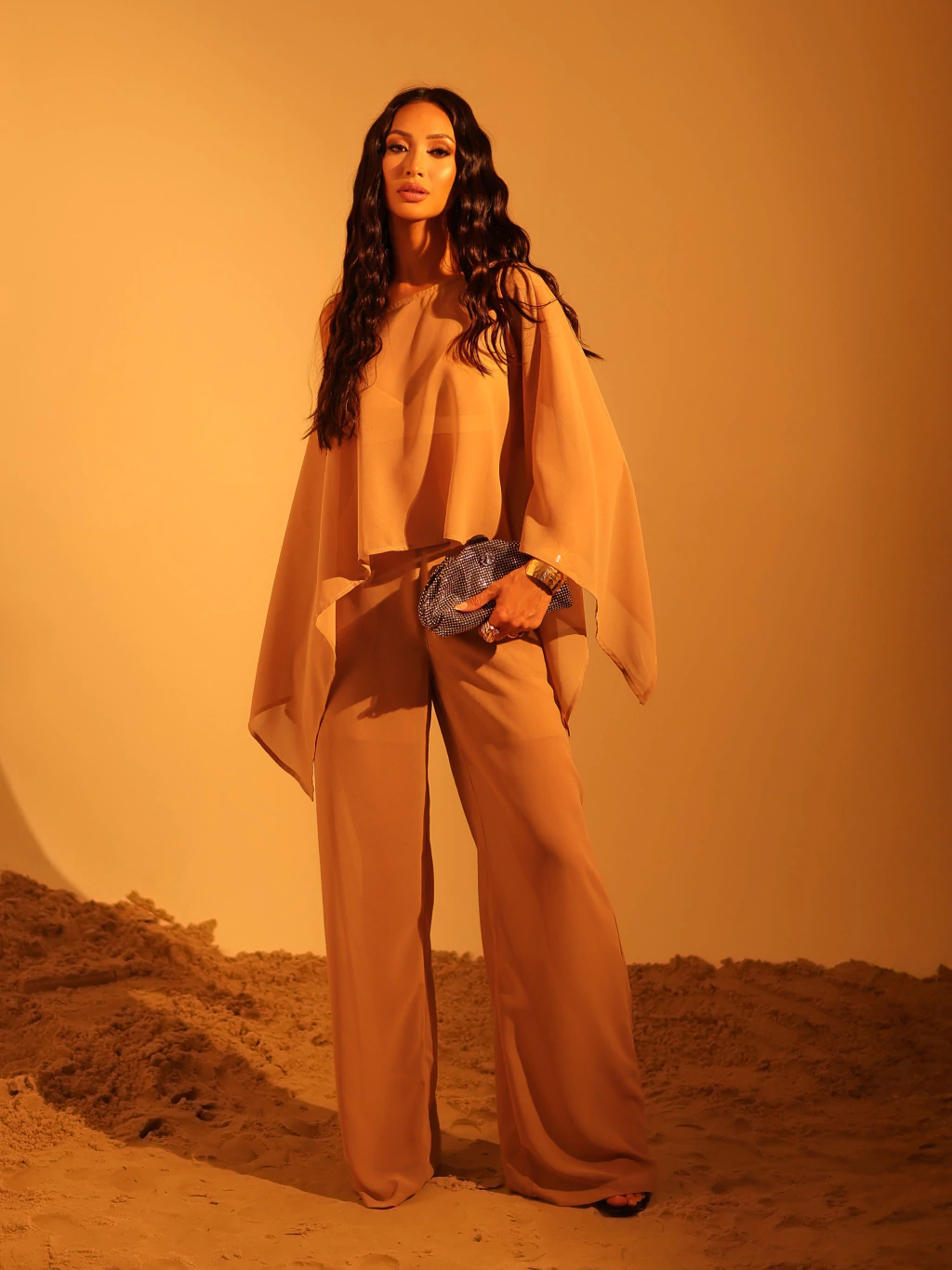 A Calça Ana Ampla une estilo e conforto em uma peça sofisticada, perfeita para quem valoriza um visual elegante. Seu corte fluido e amplo, no modelo pantolna, proporciona um caimento leve que realça a silhueta com suavidade e movimento.